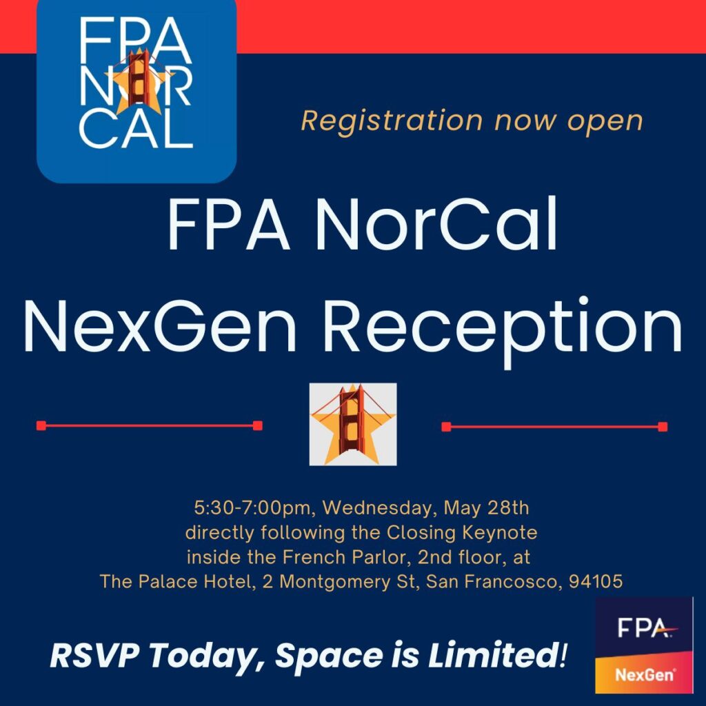 You are invited to a NexGen Reception hosted by the FPA NorCal Conference, directly following the Closing Keynote.